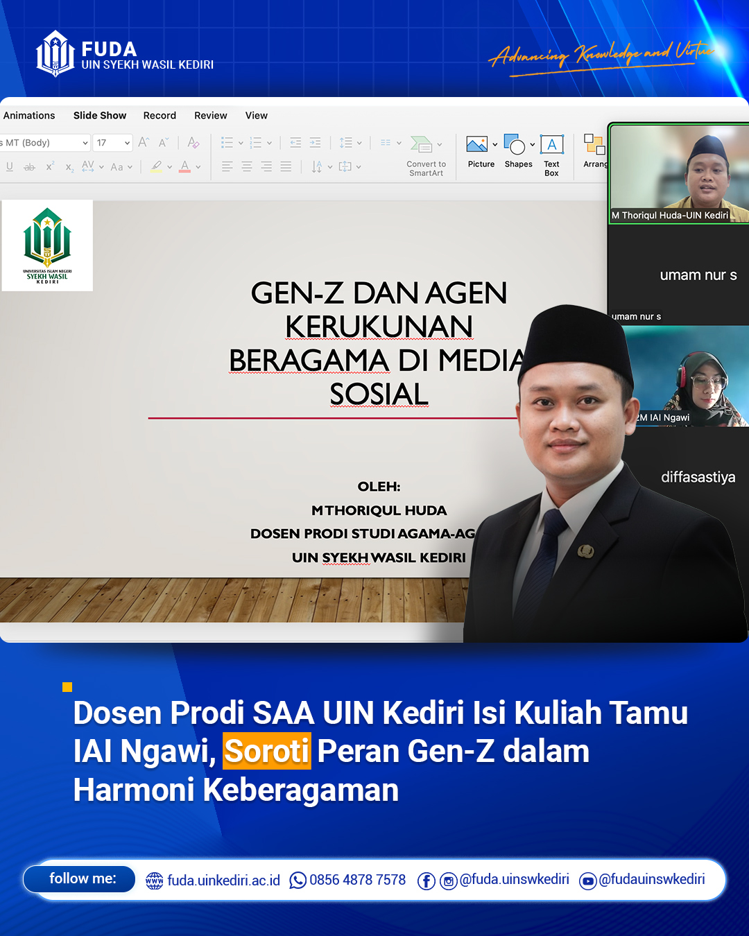 Kediri, M. Thoriqul Huda, menjadi pembicara dalam Kuliah Tamu bertema “Gen-Z; H