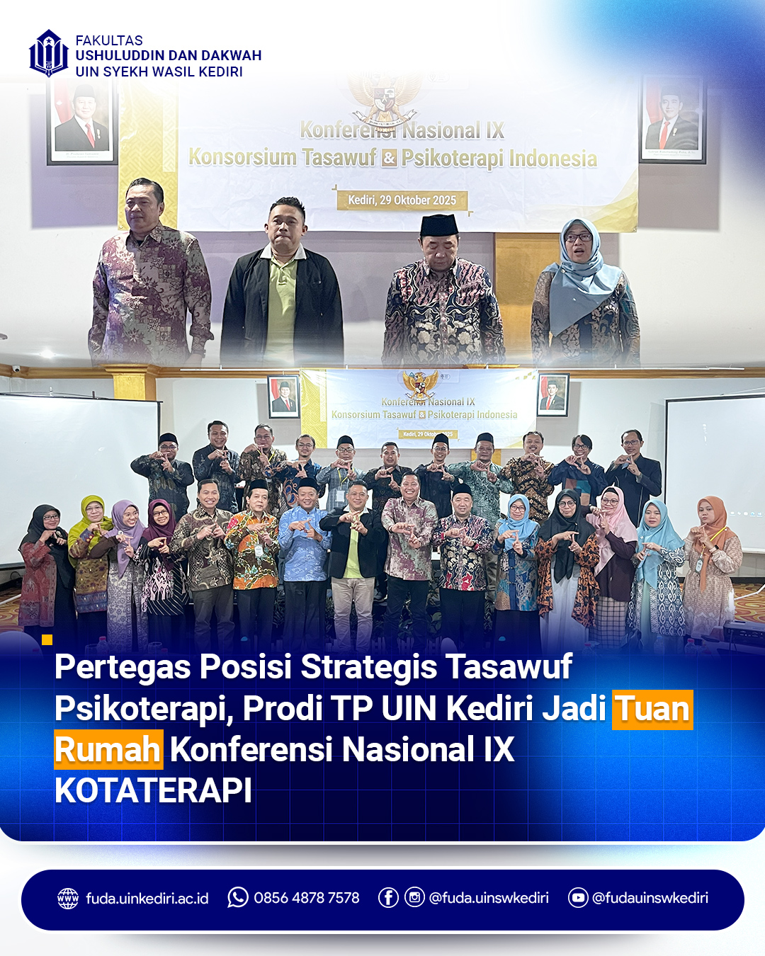 FUDA Newsroom – Program Studi (Prodi) Tasawuf dan Psikoterapi (TP) Fakultas Ushuluddin dan Dakwah (FUDA) UIN Syekh Wasil Kediri menjadi tuan rumah Konferensi Nasional (Konfernas) IX Konsorsium T